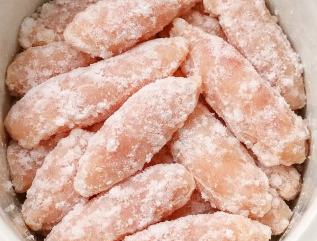 Pour the apricot-Italian mixture evenly over the frozen chicken tenderloins, using a spatula to scrape out every bit of sauce so the chicken is mostly coated.