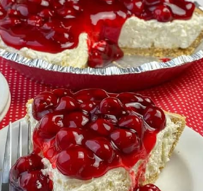 - And here is our unbaked cherry cheesecake finished, beautiful, and delicious!