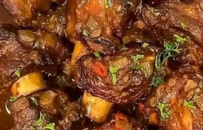 Cover the pot and let the oxtails simmer for 2.5 to 3 hours, or until the meat is tender and falling off the bone. Stir occasionally and add more broth if needed.
