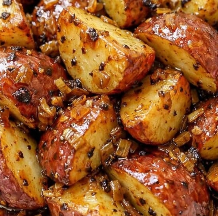 Serve these potatoes piled high on a white plate or in a simple serving bowl so their glossy, onion-speckled coating can really shine. They’re wonderful alongside meatloaf, pot roast, baked ham, or grilled chicken. Add a green vegetable—like steamed green beans, buttered peas, or a crisp salad—to round out the plate. They also make a cozy base for leftover shredded roast or sliced smoked sausage spooned over the top. If you have any left the next morning, fry them in a skillet until crisp and serve with eggs for a hearty farmhouse breakfast.
